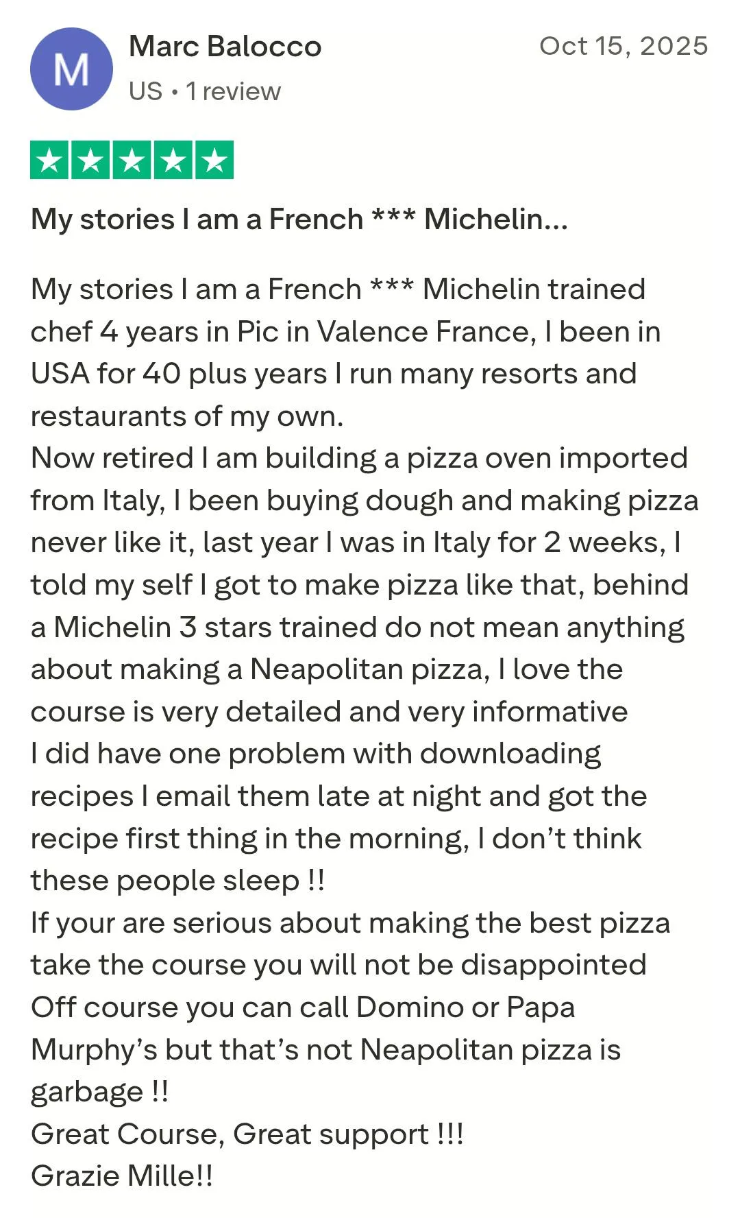 Founded the Pizzaiolo Training Academy, where he has trained 200+ pizzaiolos in live classes.