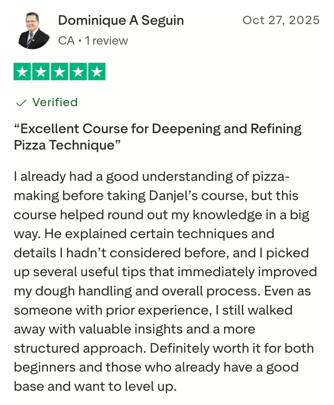 Clear, step-by-step instructions that are simple and to the point. You’ll quickly go from an uncertain beginner to a confident pizzaiolo who knows exactly what they’re doing. Each lesson comes with PDF “Methodology Steps” to help you focus only on what matters most. This structured approach gives you fast, repeatable results.